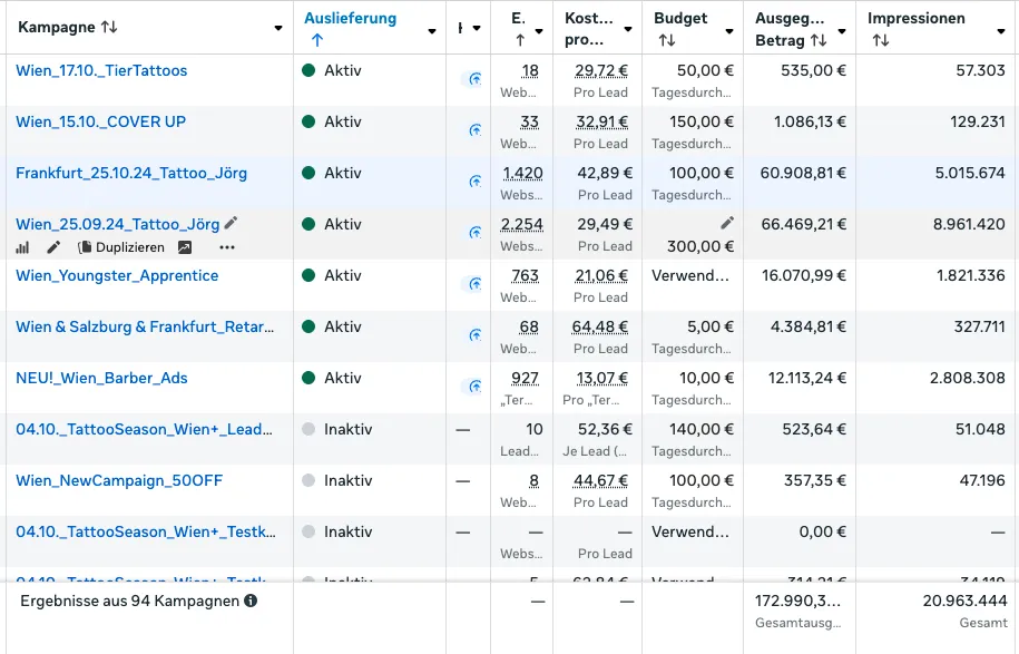 €293,000 in ad spend → €552,000 in deposits, before the tattoo even starts.
